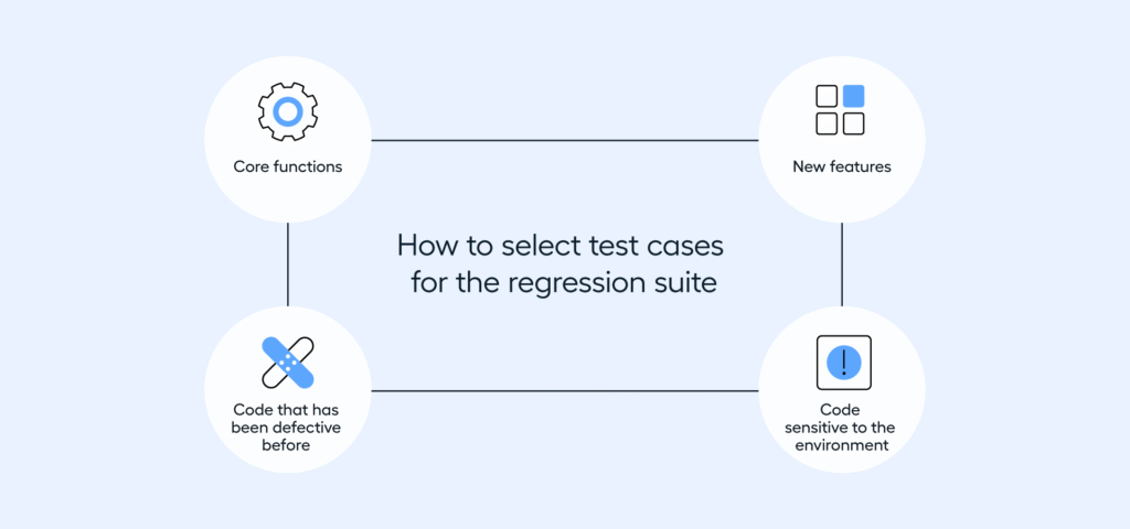 The next step involves selecting the tests for your regression suite. You can’t test everything, so determining how to prioritize the test cases is important. Use the following prompts as guidance for building your regression testing suite: