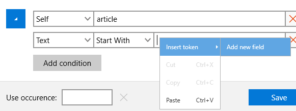 Just as with the text condition previously we can also add a FIELD to the occurrence field. Just right-click and add the field as before.